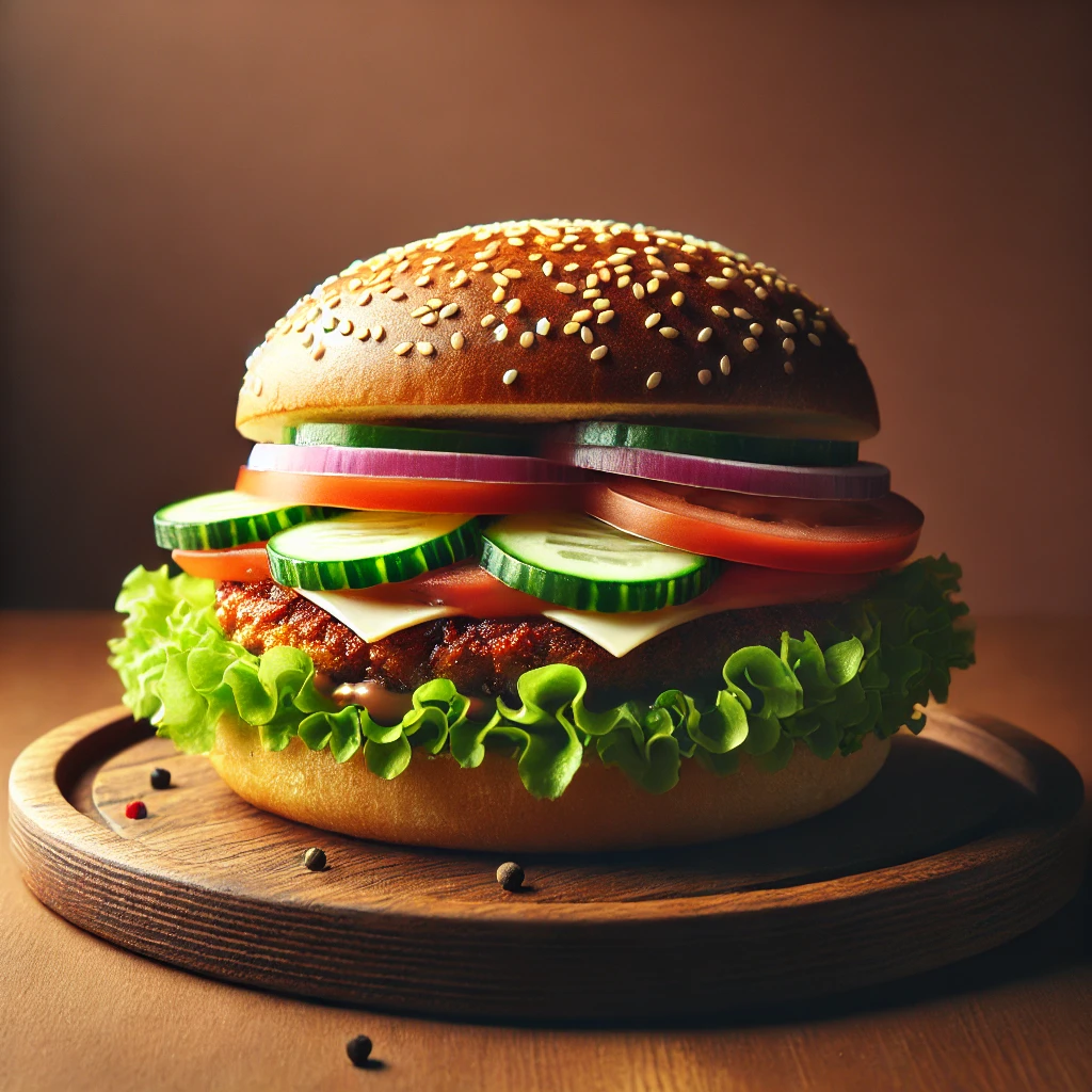 A veggie burger is a delicious and nutritious alternative to traditional meat burgers, crafted with a flavorful patty made from a blend of vegetables, legumes, grains, and spices. It’s often paired with fresh lettuce, juicy tomatoes, crisp onions, and creamy sauces, all tucked into a soft, toasted bun. The patty is typically grilled or pan-fried to achieve a satisfying texture and taste. Perfect for vegetarians and health-conscious diners, the veggie burger delivers a hearty, wholesome experience. It’s a versatile dish that can be customized with various toppings to suit personal preferences